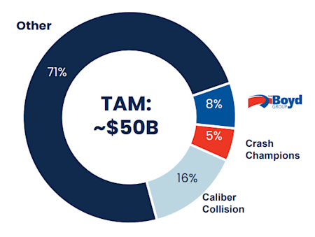 Boyd Group Services Inc. is a Winnipeg based owner of North American autobody repair shops. In previous decades, the company has successfully employed a roll-up style acquisitive growth strategy in a stable and high synergy market. In the shadow of the company’s largest acquisition in history, shares have fallen significantly, a move which we do not see as warranted given the context of the environment surrounding the business. As a result, we believe a very attractive buying opportunity exists for BYD shares at present.
